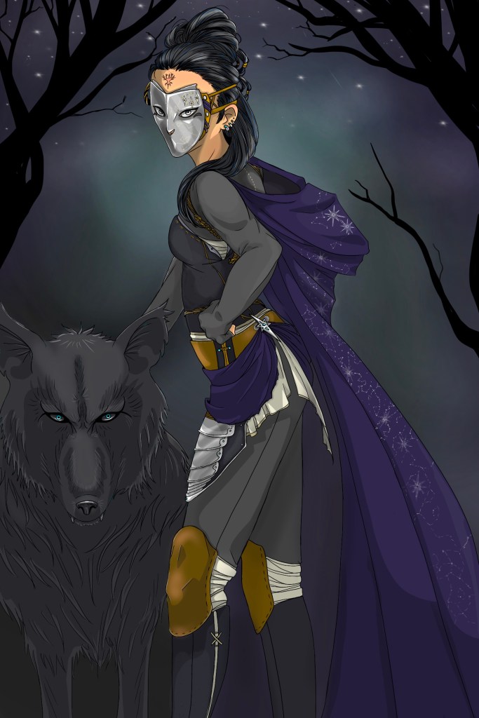 El’Nath is a master warrior and hunter. Her prowess with their cultural weapon–twin crescent-shaped blades–is unmatched. She has trained unceasingly in the hopes of avenging her sister’s murder at the hands of Muhlifain, the queen’s most notorious Handmaiden. Her greatest assets are an indomitable spirit and the loyal wolf at her side, Aldebaran.